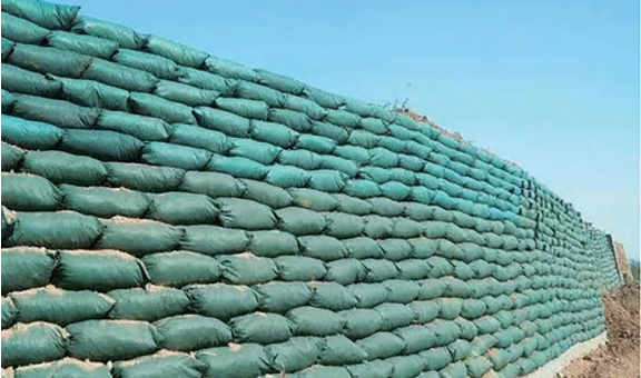 袋裝式擋土墻是將砂或土用聚酯復(fù)合生態(tài)袋包裹后堆積砌成擋土墻。這種擋土墻施工成本非常低,對地勢幾乎無要求,適應(yīng)性強(qiáng),主要適用于土質(zhì)松軟的山體斜坡處,可在山體滑坡等地勢復(fù)雜環(huán)境下施工。