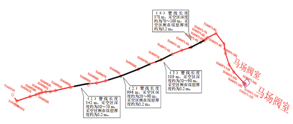 圖 3 下方存在疑似采空區(qū)的管線區(qū)段(黑色部分)