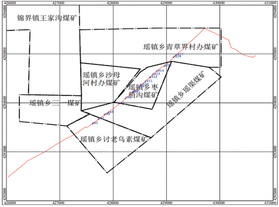圖 1 錦界段遷改工程煤礦采空區(qū)分布圖