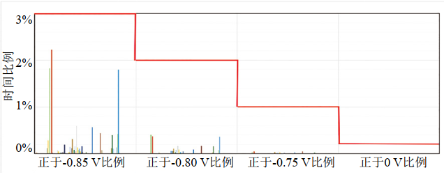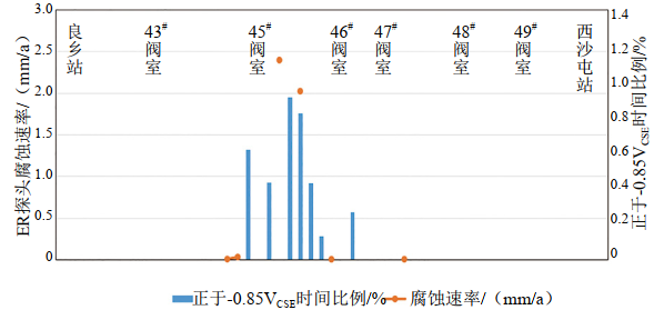 圖 1 良西段監(jiān)測(cè)腐蝕速率與正于-0.85 Vcse時(shí)間比例分布