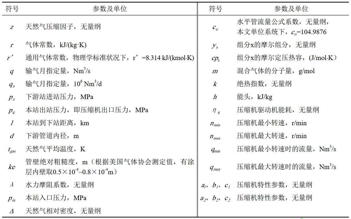(1)基礎(chǔ)參數(shù)。①管網(wǎng)系統(tǒng)信息:壓氣站輸氣指定量(調(diào)度中心指令),壓縮機(jī)進(jìn)口壓力(由上游來氣壓力決定),下游站進(jìn)口壓力(調(diào)度中心指令),到下游站距離,下游管道管材、直徑、壁厚、粗糙度,地溫;②設(shè)備信息:壓縮機(jī)特性,驅(qū)動機(jī)效率。