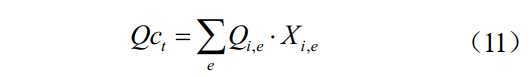 壓縮機(jī)總輸氣量等于輸氣指定量,即Qct=qt,由于所有壓縮機(jī)并聯(lián),根據(jù)能量守恒定律,壓縮機(jī)總輸氣量為每臺壓縮機(jī)輸氣量之和,見式(11):