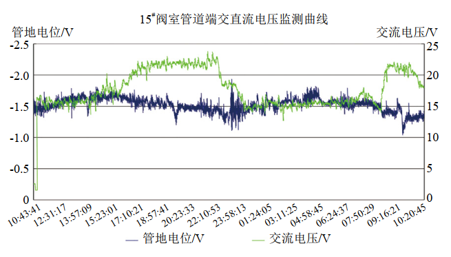 圖 2 15#閥室管道端交直流電壓監(jiān)測曲線