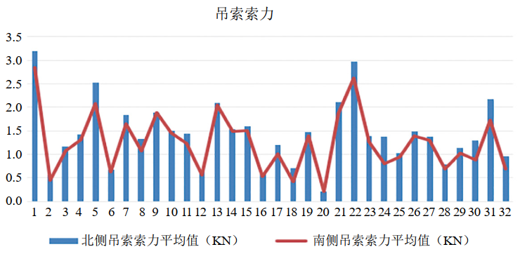 圖 3 南北側(cè)吊索索力及索力差值百分比