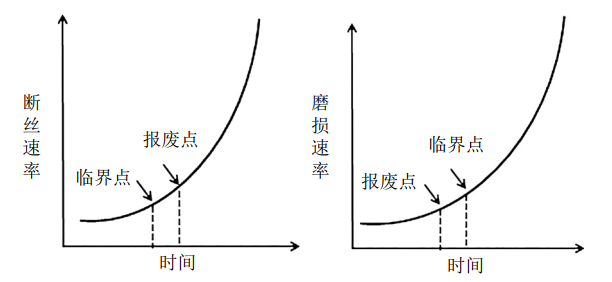 圖 4 斷絲、磨損臨界點(diǎn)與標(biāo)準(zhǔn)報(bào)廢點(diǎn)位置示意圖