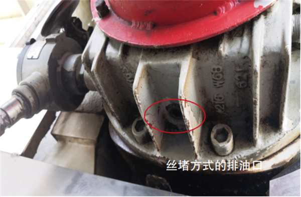 傳統(tǒng)的潤滑油箱排油口一般采用絲堵或者排油管加堵頭的方式(圖 2),需專用內(nèi)六方或者管鉗進行拆卸、安裝,操作人員側(cè)身或者俯臥由下往上擰動絲堵,若開關(guān)方向錯誤,極易造成絲堵內(nèi)絲損傷而滑絲,嚴重時造成絲堵無法拆除。由于作業(yè)空間狹窄,作業(yè)人員配合不熟練易造成碰傷或操作失誤。絲堵一旦拆除,排放廢潤滑油時不受控制全部流出易噴濺到作業(yè)人員身上和地面上造成污染。