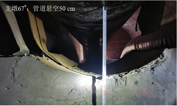 圖 1 管道軸線位移及洞口管道懸空