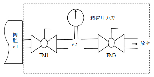 對于閥腔帶有泄放口(排污口或放空口或兩者都有)的球閥(以下簡稱帶泄放口球閥),可通過關(guān)閉閥門、打開閥腔泄放口放空氣體來判斷閥門是否內(nèi)漏。如果閥腔內(nèi)的氣體能夠一次性放空至常壓,說明閥門無內(nèi)漏;如果氣體一直排放不完,說明閥門內(nèi)漏或閥門限位不正確。可先調(diào)整閥門限位再觀察閥門內(nèi)漏情況。這是最常用的球閥內(nèi)漏在線檢測方法,操作簡單易行,但只能定性判斷,不能定量檢測,現(xiàn)場就地排污或放空天然氣存在一定的安全風(fēng)險[1],特別要做好排污嘴打開后無法完全關(guān)閉情況下的應(yīng)急預(yù)案和應(yīng)急處置。