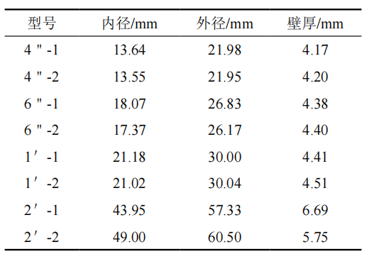 在管徑為457 mm,壁厚為7.1 mm的牽拉管段上預(yù)制了不同尺寸的焊接鋼管(表 1、圖 1)及人工通孔和補(bǔ)丁(表 2),全面模擬與現(xiàn)場盜油孔信號相似的管道特征物。這四種管道特征物分別為:通孔(未焊接鋼管)、 焊接鋼管(只焊接鋼管、未打孔)、小開孔(打通孔后焊接鋼管)、補(bǔ)丁。