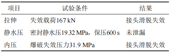 表 2 機(jī)械連接件拉伸、靜水壓、內(nèi)壓試驗(yàn)結(jié)果