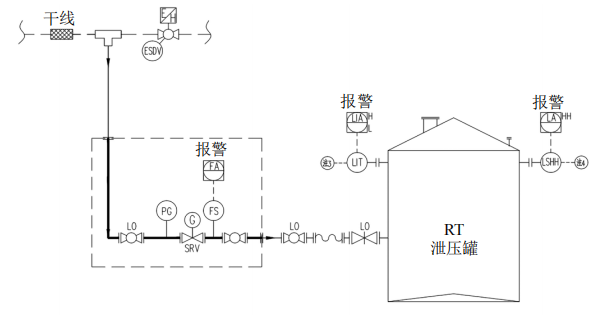 其中,執(zhí)行機構(gòu)、壓力變送器、流量開關(guān)、液位計應(yīng)具備SIL2安全等級,而且為提升執(zhí)行機構(gòu)供電安全,泄壓閥前遠控球閥納入UPS配電,并設(shè)置邏輯鎖開,閥門一旦離開全開位時可上傳報警信號。