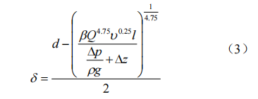 結(jié)合管道摩阻,通過當(dāng)量直徑反算法確定管道內(nèi)結(jié)蠟層平均厚度,結(jié)蠟計(jì)算核心公式為: