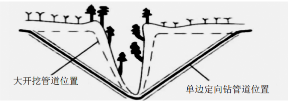 單邊定向鉆穿越不同于水平定向鉆穿越和人工斜井穿越,其利用水平定向鉆技術(shù)成孔和擴(kuò)孔、利用人工斜井技術(shù)發(fā)送管道到斜井內(nèi),是水平定向和人工斜井技術(shù)的結(jié)合應(yīng)用。穿跨越治理工程采用單邊定向鉆加溝底穿越的實(shí)施方案,可以穩(wěn)定避開山體表面的地質(zhì)敏感區(qū)域,受施工環(huán)境影響較小,實(shí)施方便經(jīng)濟(jì)高效,可成為油氣田管道進(jìn)行穿跨越治理時(shí)優(yōu)先考慮的技術(shù)之一。
