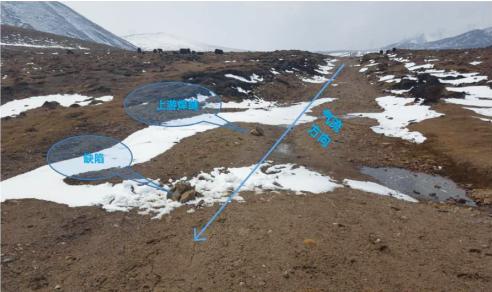 (2)定位。借助RTK靜態(tài)測(cè)量精確定位管道彎曲缺陷點(diǎn)坐標(biāo)(圖 1),管道埋深1.8 m,位于3800 m高海拔牧區(qū),土壤為凍土層,地表有砂石。