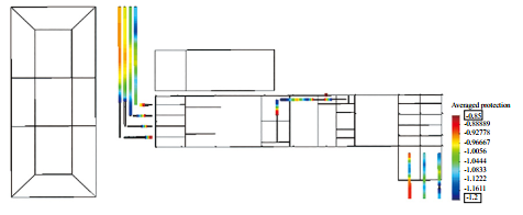 圖 6 保護電流輸出4.8 A時低碳鋼水平接地體管道電位分布云圖