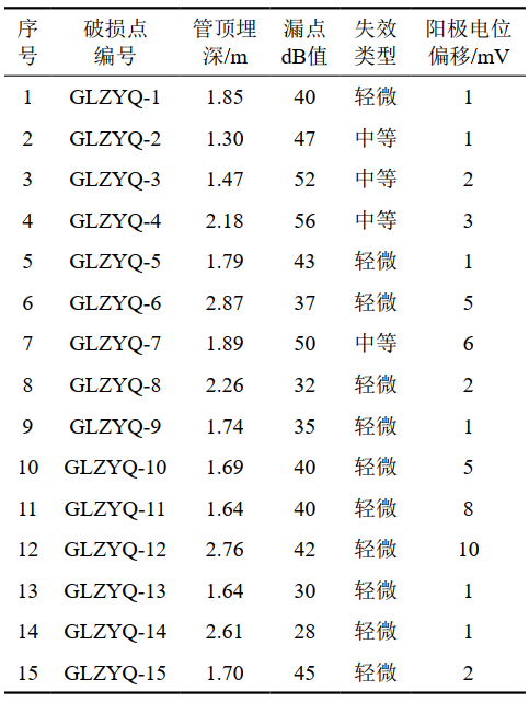 表 1 防腐層破損點(diǎn)對應(yīng)陽極場電位正向偏移統(tǒng)計(jì)表