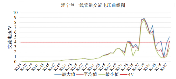 圖 3 澀寧蘭一線管段交流干擾電壓曲線圖