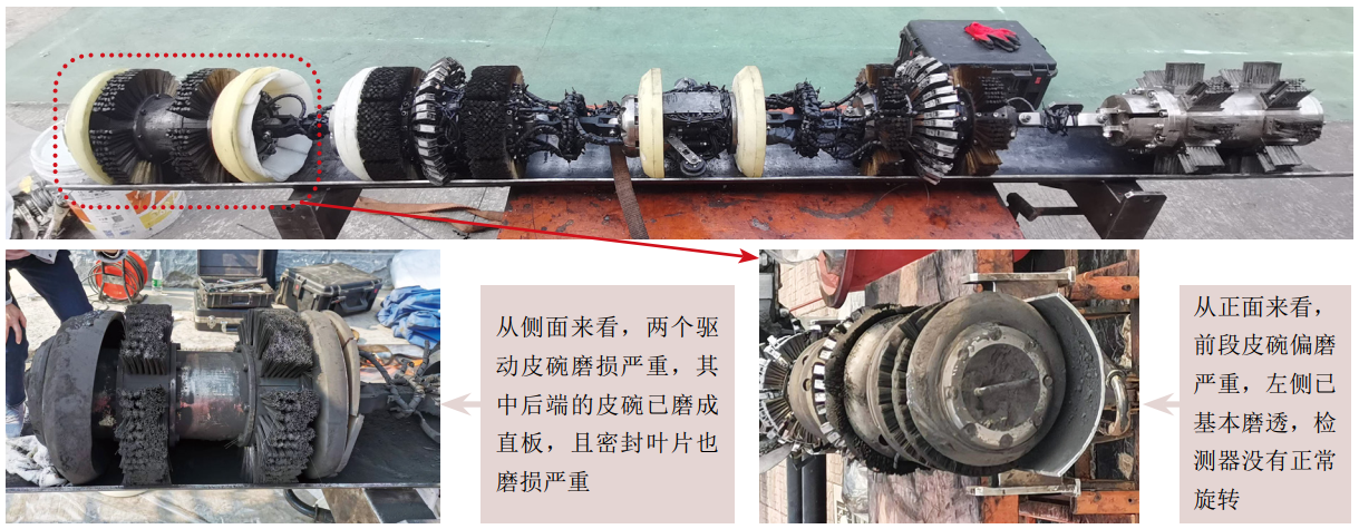 (2)天然氣輸量沒有達到要求。在發(fā)送檢測器前調整輸量時,只考慮了內檢測器自重情況下所需要的理想輸量,未考慮到在前段雜質堆積、驅動皮碗磨損嚴重的困難情況下所需要的最大輸量。