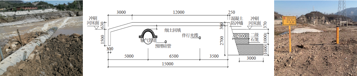 圖 6 管道埋深不足及鋼筋混凝土蓋板防護(hù)示例