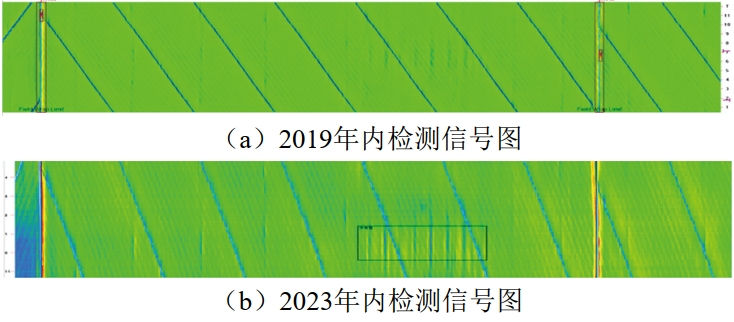 (2)單純通過內(nèi)檢測數(shù)據(jù)列表進(jìn)行對齊可能造成部分缺陷無法匹配。可以通過對重點(diǎn)特征內(nèi)檢測原始信號圖進(jìn)行人工匹配,作進(jìn)一步分析。