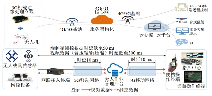 圖 1 5G無人機(jī)巡檢架構(gòu)設(shè)計(jì)和數(shù)據(jù)傳輸示意圖