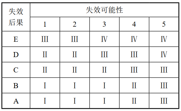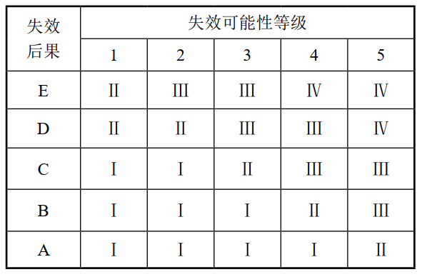 GB 32167附錄E,給出了典型的風(fēng)險(xiǎn)矩陣和評(píng)價(jià)等級(jí),如表 1、表 2、表 3所示。