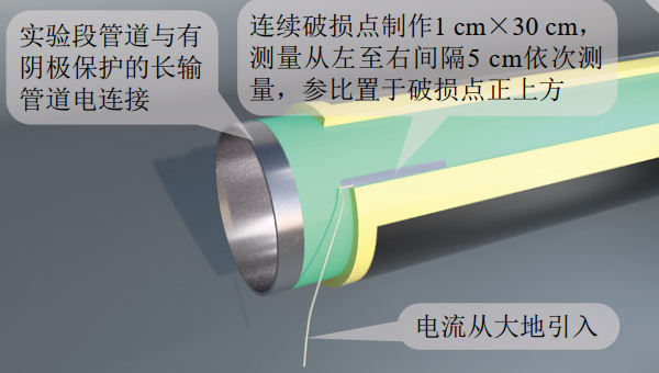 實(shí)驗(yàn)估算保溫層進(jìn)水后的陰保屏蔽距離大約為水膜厚度的5至10倍,該距離內(nèi)陰極保護(hù)可能有效,距離之外基本處于陰保屏蔽狀態(tài)。