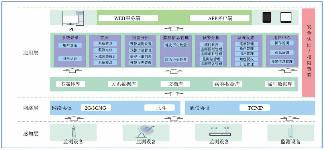 (2)平臺(tái)功能。包括地圖展示、實(shí)時(shí)監(jiān)測(cè)、歷史數(shù)據(jù)、預(yù)警預(yù)報(bào)、報(bào)表管理、系統(tǒng)管理等功能模塊,實(shí)現(xiàn)管道地災(zāi)的實(shí)時(shí)監(jiān)測(cè)與管理。同步研發(fā)手機(jī)版“地質(zhì)災(zāi)害監(jiān)測(cè)預(yù)警APP”,具有監(jiān)測(cè)數(shù)據(jù)瀏覽、預(yù)警信息查看、現(xiàn)場(chǎng)信息反饋上報(bào)等功能,實(shí)現(xiàn)“現(xiàn)場(chǎng)+后臺(tái)”的互動(dòng)。