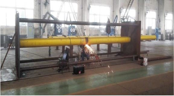 首先通過有限元軟件進行管道焊接拘束度模擬計算。其次設(shè)計制造一套用于模擬足尺寸連頭口自拘束的試驗裝置(圖 1),模擬不同拘束狀態(tài)下的管道焊接(圖 2),并對不同拘束度條件下所得焊縫接頭的斷裂韌性值(CTOD)進行測試。最后,通過預(yù)制焊接缺陷對管道內(nèi)部施加水壓及彎曲載荷,測試含拘束條件下的焊縫部位的爆破壓力,評估含缺陷焊縫在特定工況(如滑坡)條件下對彎曲載荷加載速率的敏感性。