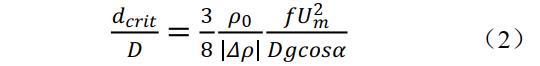 式中:D為管道內(nèi)徑,m;α為管道的傾角,°;Δρ為油水密度差,kg/m3;為重力加速度,9.81 m/s2;f 為湍流摩阻系數(shù),0.046/Rem0.2;Um為混合相入口速度,m/s。