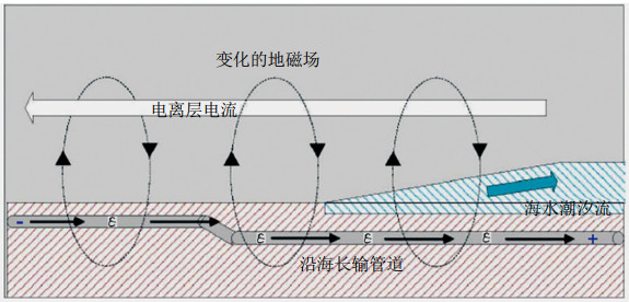 圖 2 潮汐感應(yīng)、電離層電流作用于沿海管道