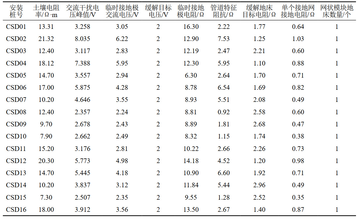 表 1 交流干擾緩解網狀地床安裝位置及參數指標