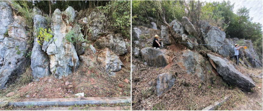 圖 2 危巖體清除前(左)后(右)現(xiàn)場圖