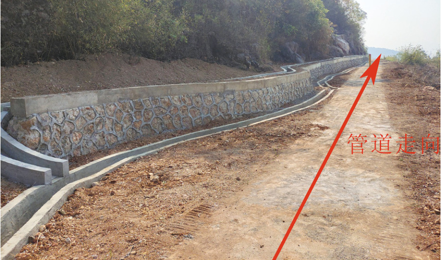 現(xiàn)場發(fā)現(xiàn)該地段存在發(fā)生地質(zhì)災害的潛在可能性,包括人工邊坡危巖體崩塌、漿砌石護坡體破損、排水體系局部缺失及可能存在的管道被山坡滑移體整體推移。極易導致油氣管道斷裂、變形、防腐層受損以及光纜等附屬設施損毀致使管道失效。