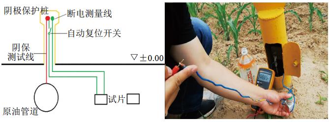 依據(jù)上述準(zhǔn)則,公司在吳延線(甘泉至洛川段)安裝5組極化電位測量試片,用于檢測輸油管線的極化電位,以便判斷陰極保護(hù)電位是否介于﹣1.15 VCSE~﹣0.9 VCSE之間(圖 1)。