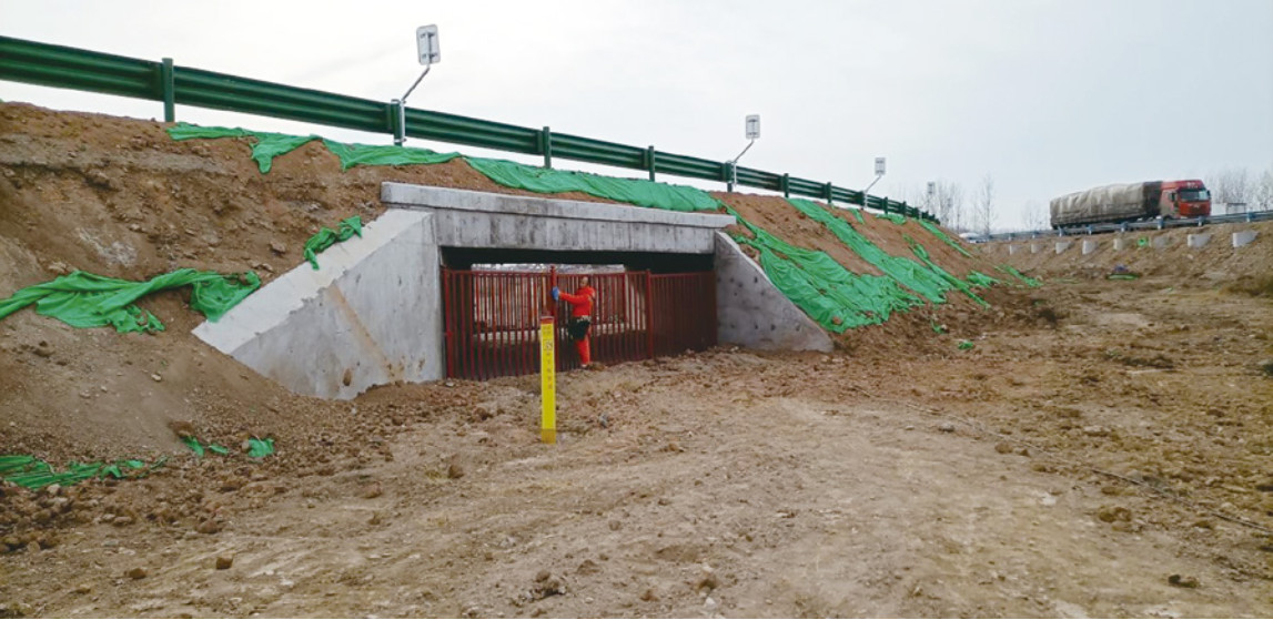 沿太行高速在河南焦作地區(qū)與西氣東輸一線管道交叉,原設(shè)計方案采取傳統(tǒng)蓋板涵方式對管道進(jìn)行保護(hù),道路建成后形成地理阻隔,管道巡護(hù)人員需繞行近2000 m才能到達(dá)高速另一側(cè),嚴(yán)重影響管道巡護(hù)。經(jīng)過協(xié)商和論證,最終通道涵方案獲得各方認(rèn)可,將工程的相互影響降到了最低。