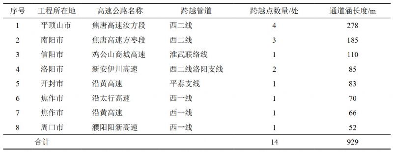 高速公路和管道屬于線性工程,在規(guī)劃建設(shè)過程中雙方相遇交叉難以避免,僅河南省近兩年已建和在建的高速公路與西氣東輸管道交叉點超過20處,優(yōu)化交叉工程設(shè)計,對保障雙方安全運行具有重要意義。