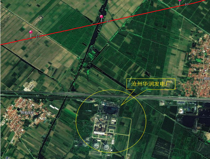 圖 1 滄河線與滄州華潤發(fā)電廠相對位置圖