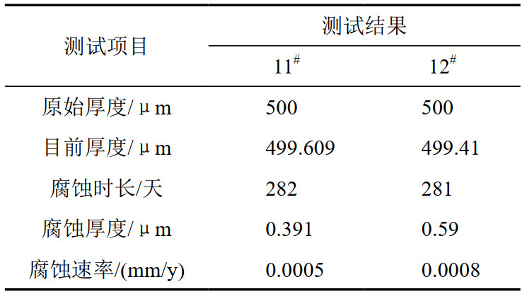 表 2 ER腐蝕探頭測試結果
