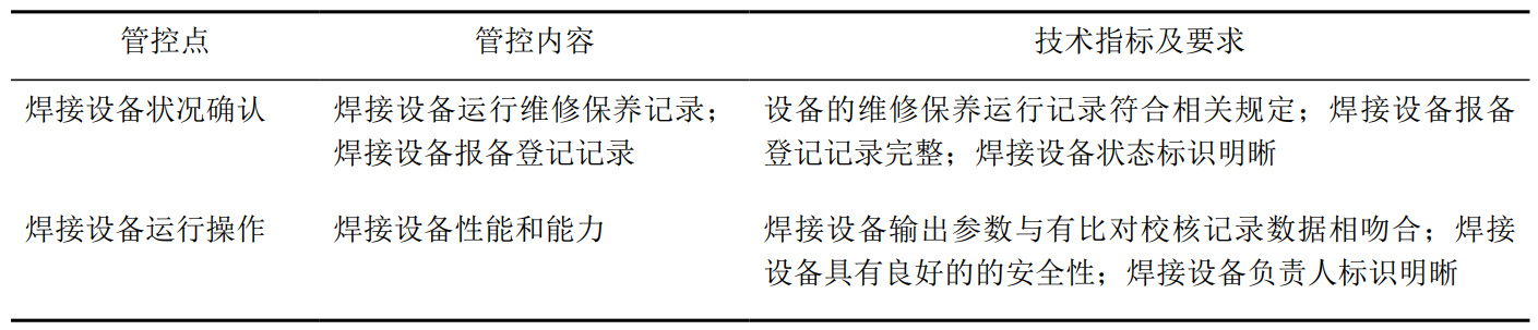 表 3 焊接設(shè)備的質(zhì)量關(guān)鍵點(diǎn)
