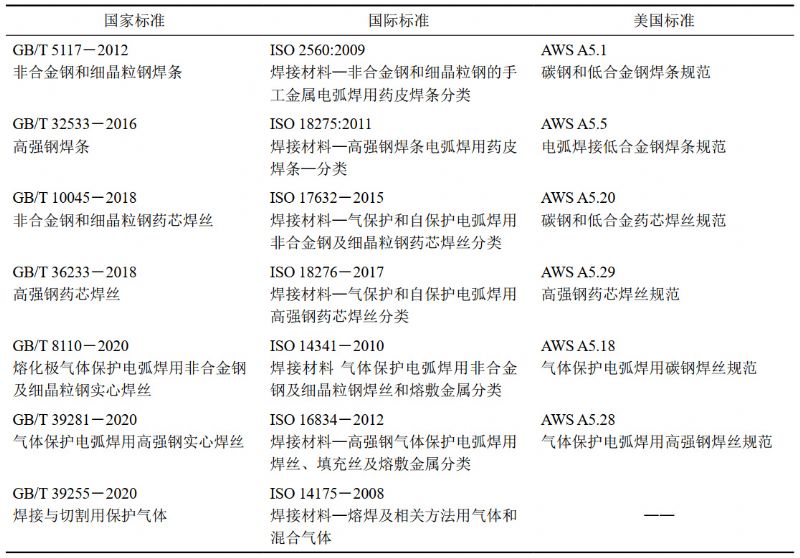 表 4 焊接材料的國內(nèi)外標(biāo)準(zhǔn)對(duì)照表