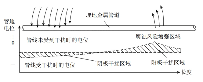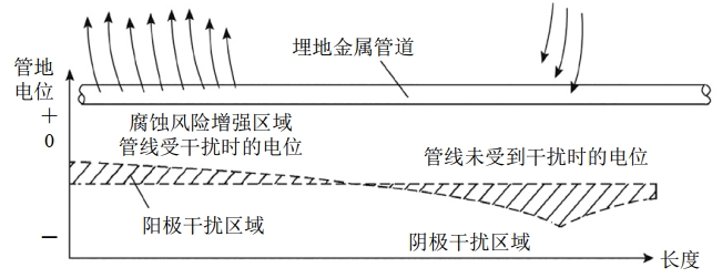 圖 2 接地極陰極放電時(shí)管道受干擾模式