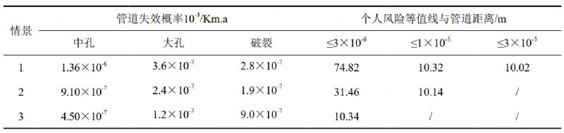 表 1 不同管道失效概率下的個(gè)人風(fēng)險(xiǎn)