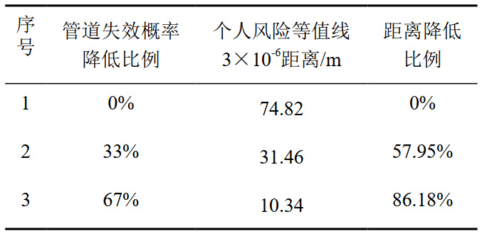 表 2 管道失效概率與個(gè)人風(fēng)險(xiǎn)
