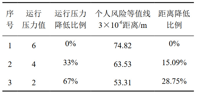 表 5 運(yùn)行壓力與個(gè)人風(fēng)險(xiǎn)