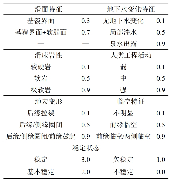 滑坡類型多樣,影響因素眾多,是一個(gè)復(fù)雜的工程問(wèn)題,難以進(jìn)行工程定量計(jì)算。此外,各個(gè)工程所獲指標(biāo)不統(tǒng)一,部分指標(biāo)為定量,部分指標(biāo)為定性,這使得應(yīng)用神經(jīng)網(wǎng)絡(luò)進(jìn)行滑坡分析與預(yù)測(cè)時(shí),面臨首個(gè)難題是滑坡數(shù)據(jù)的提取與樣本庫(kù)的建立。