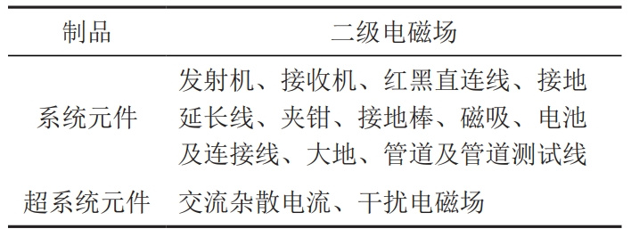 (1)定義技術(shù)系統(tǒng)實(shí)現(xiàn)的功能。問(wèn)題所在的技術(shù)系統(tǒng)為電磁感應(yīng)系統(tǒng),該技術(shù)系統(tǒng)的功能是測(cè)量管道位置和埋深,實(shí)現(xiàn)該功能的約束為強(qiáng)電磁干擾。