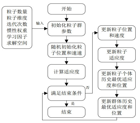 優(yōu)化策略二。神經(jīng)網(wǎng)絡(luò)的訓(xùn)練目標(biāo)是根據(jù)訓(xùn)練集數(shù)據(jù),以損失函數(shù)作為參考,確定網(wǎng)絡(luò)中的權(quán)重和偏置,通過(guò)計(jì)算機(jī)大量運(yùn)算,推測(cè)訓(xùn)練集數(shù)據(jù)間的映射關(guān)系,最后用訓(xùn)練時(shí)得出的映射關(guān)系來(lái)預(yù)測(cè)驗(yàn)證集數(shù)據(jù)。由此可見(jiàn),神經(jīng)網(wǎng)絡(luò)中的目標(biāo)參數(shù)權(quán)重和偏置,對(duì)模型預(yù)測(cè)結(jié)果的影響至關(guān)重要。因此,本文通過(guò)粒子群算法(PSO)優(yōu)化目標(biāo)參數(shù),提高神經(jīng)網(wǎng)絡(luò)預(yù)測(cè)的準(zhǔn)確性(圖 3)。