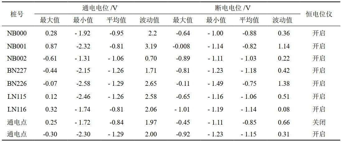 表 1 陰極保護(hù)站恒電位儀運(yùn)行參數(shù)