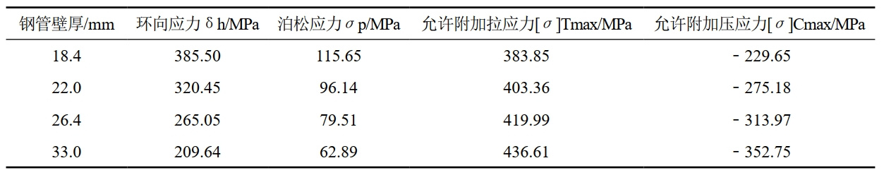 表 1 管道強(qiáng)度校核計(jì)算結(jié)果